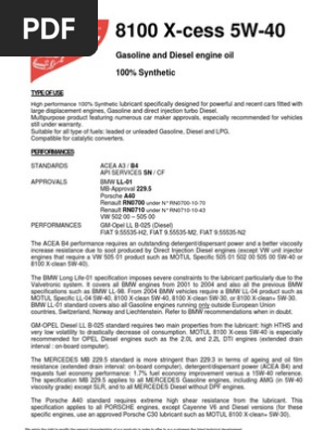 Motul 8100 X Clean 5w40 Datasheet